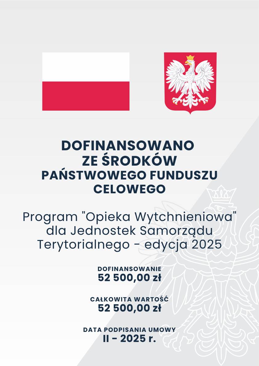 Gmina Biała Rawska w 2025 roku przystąpiła do Programu Ministra Rodzinym Pracy i Polityki Społecznej „Opieka wytchnieniowa” dla Jednostek Samorządu Terytorialnego - edycja 2025, który będzie finansowany z Funduszu Solidarnościowego. Wartość zadania wynosi 52.500,00 zł. Całkowity koszt dofinansowania wynosi 52.500,00 zł.